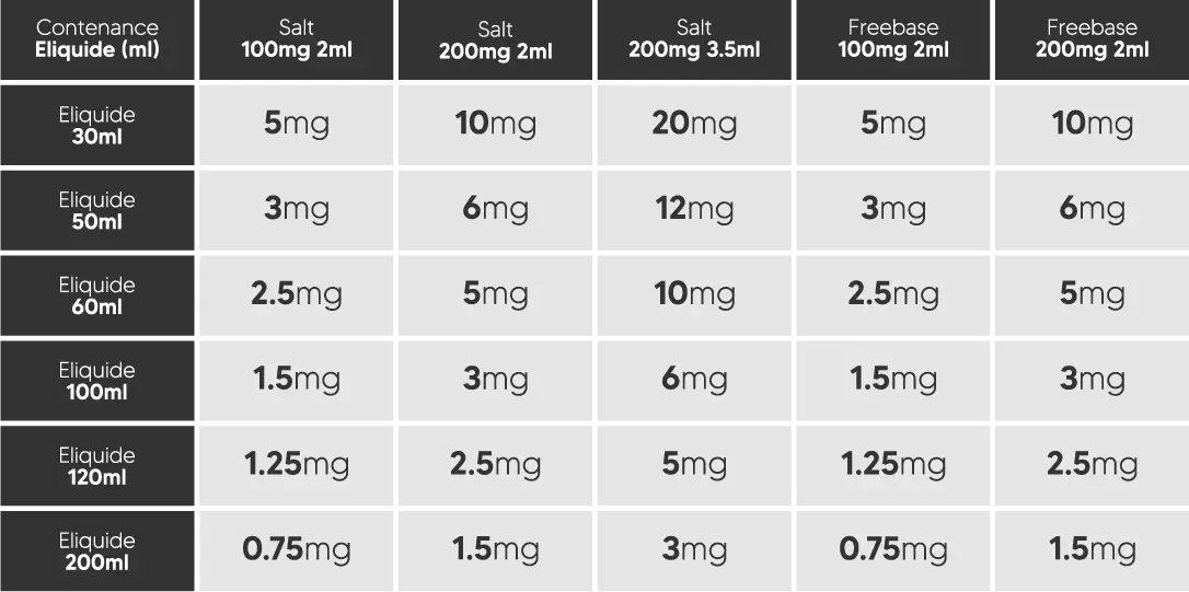 Format 10ml – Freebase & Salt – Jusqu’à 200mg/ml